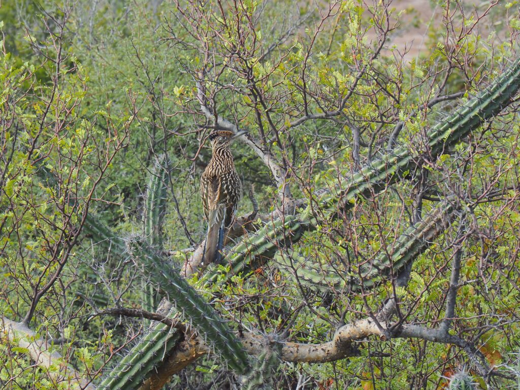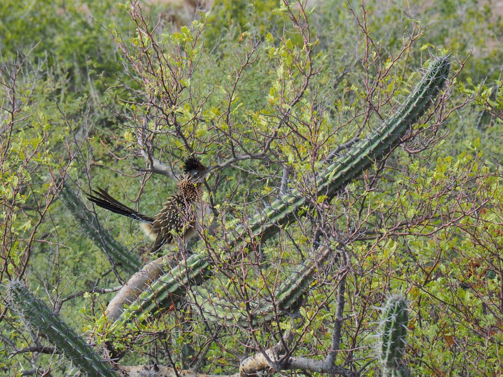 dieser ROADRUNNER will von uns unendeckt bleiben. Da wir nicht schnell genug verduften zeigt er uns sein Kampfgefieder