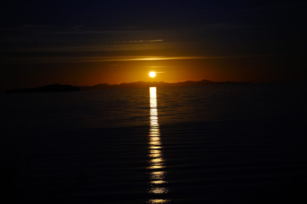 Sonnenaufgang am Morgen, Mondaufgang am Abend
