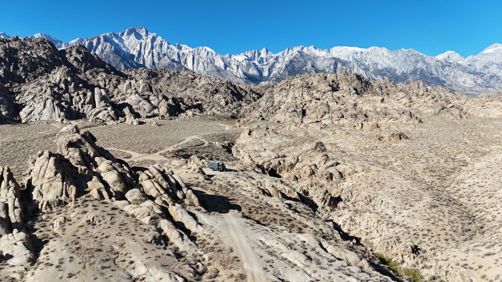 wunderbar auch die ALABAMA HILLS zwischen den Sandsteinformationen ist das Wildcampen erlaubt, so bleiben wir auch hier einige Tage