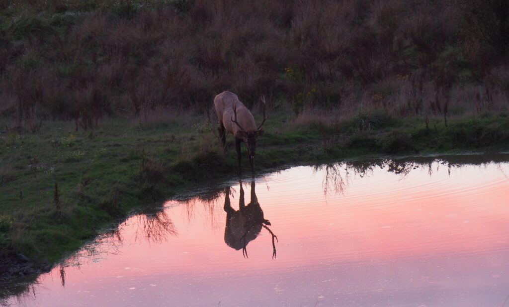 bei unserem heutigen Stellplatz gesellt sich eine Herde Rotwild zu uns