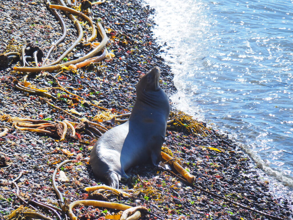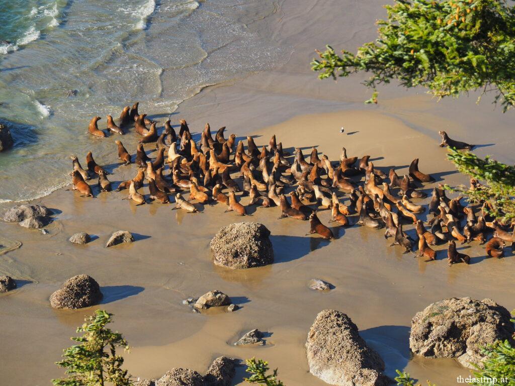 am SEA LION POINT stoßen wir auf eine große Gruppe Seelöwen die gerade ihr Sonnenbad nehmen