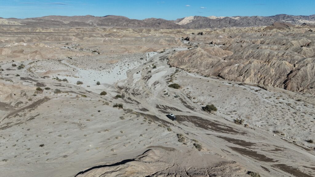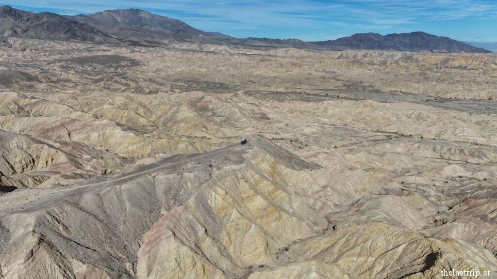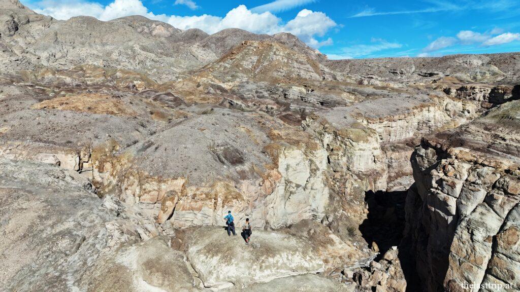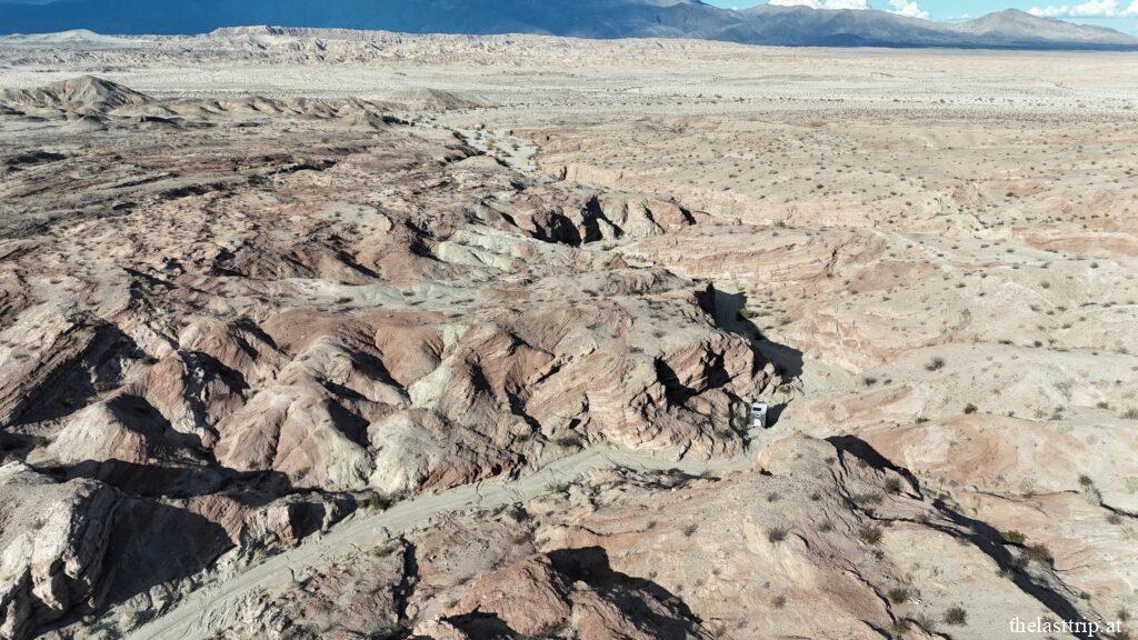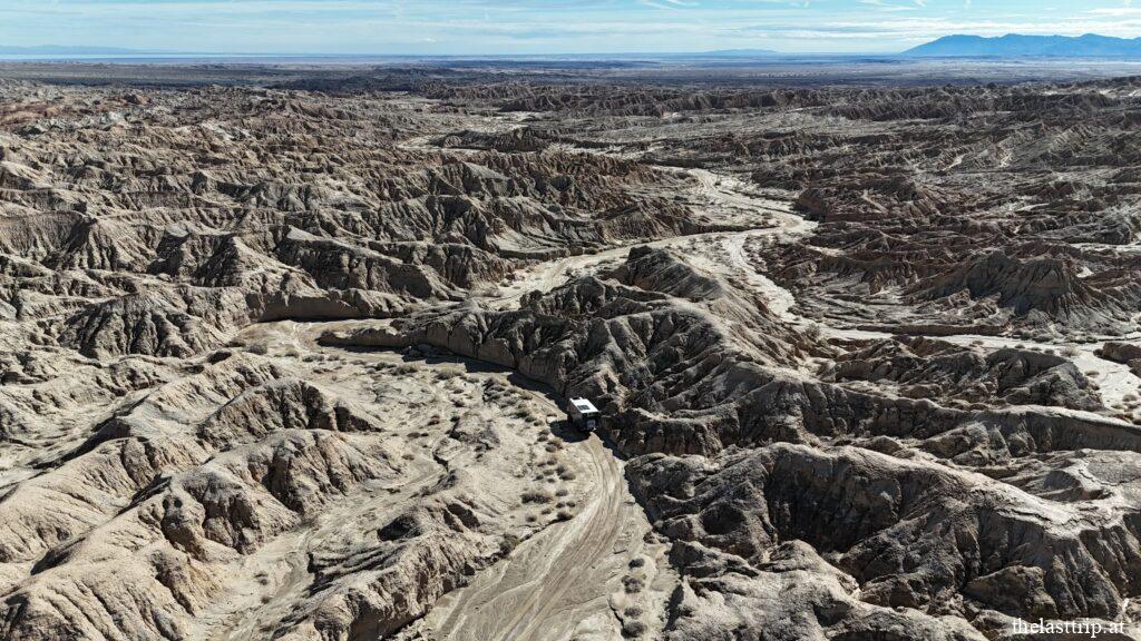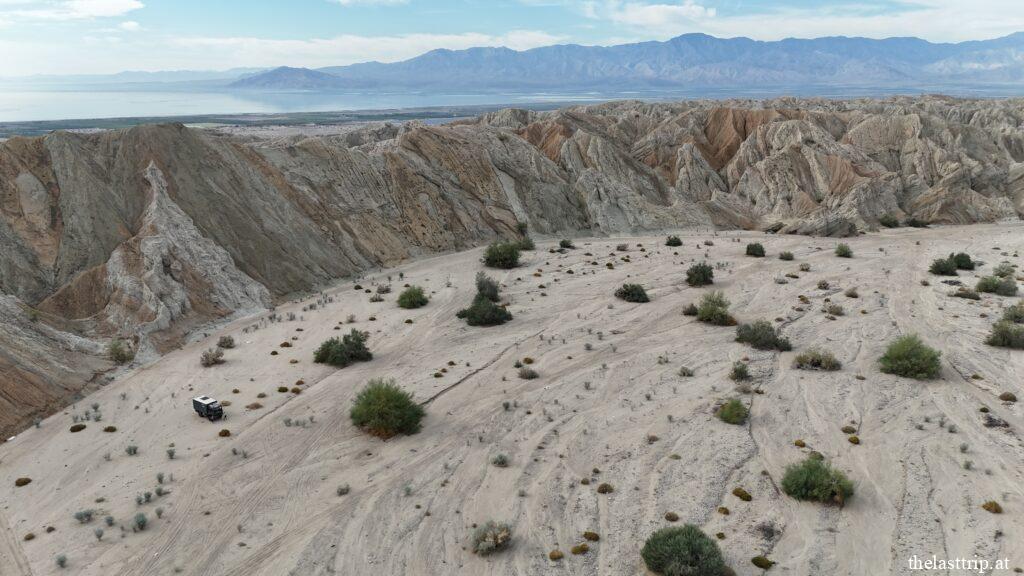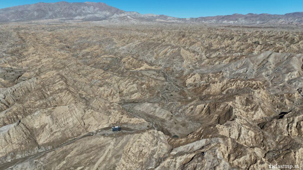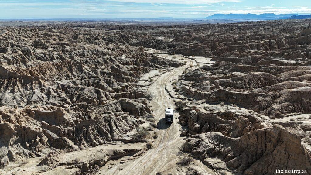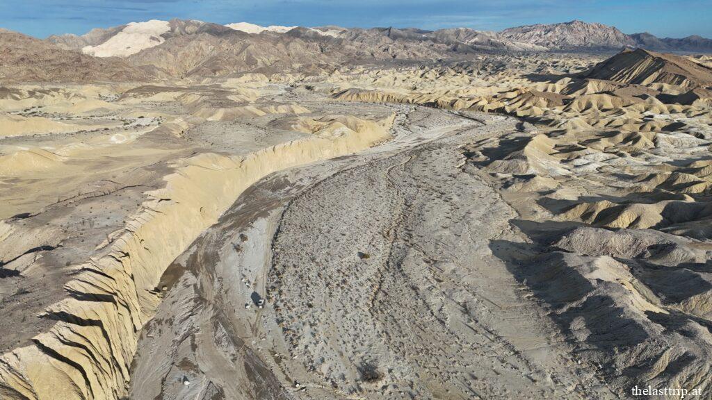 über ein ausgetrocknetes Flußbett steuern wir die beiden Aussichtspunkte die sich inmitten der BADLANDS befinden an…