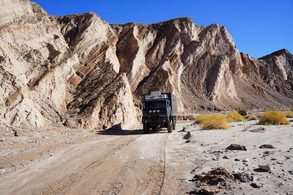 für kurze Zeit verlassen wir das DEATH VALLEY um in PAHRUMP-NEVADA unser Türschloss schweißen zu lassen, das Ölfiltergehäuse abzudichten, den Großeinkauf zu erledigen, Wäsche zu waschen und die Dieseltanks aufzufüllen da er hier viel billiger ist als in Kalifornien. Bei der Rückfahrt Zwischenstopp in TECOPA-HOT SPRING