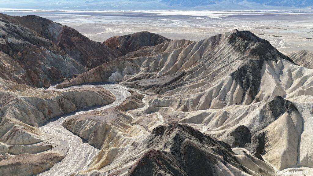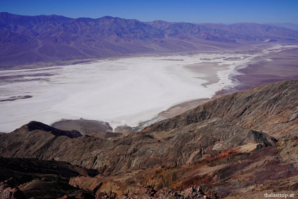 Blick hinab vom DANTES POINT ins BADWATER-BASIN dem Herzstück des DEATH VALLEYS. Liegt 86m unter dem Meeresspiegel und ist einer der heißesten Orte dieser Erde
