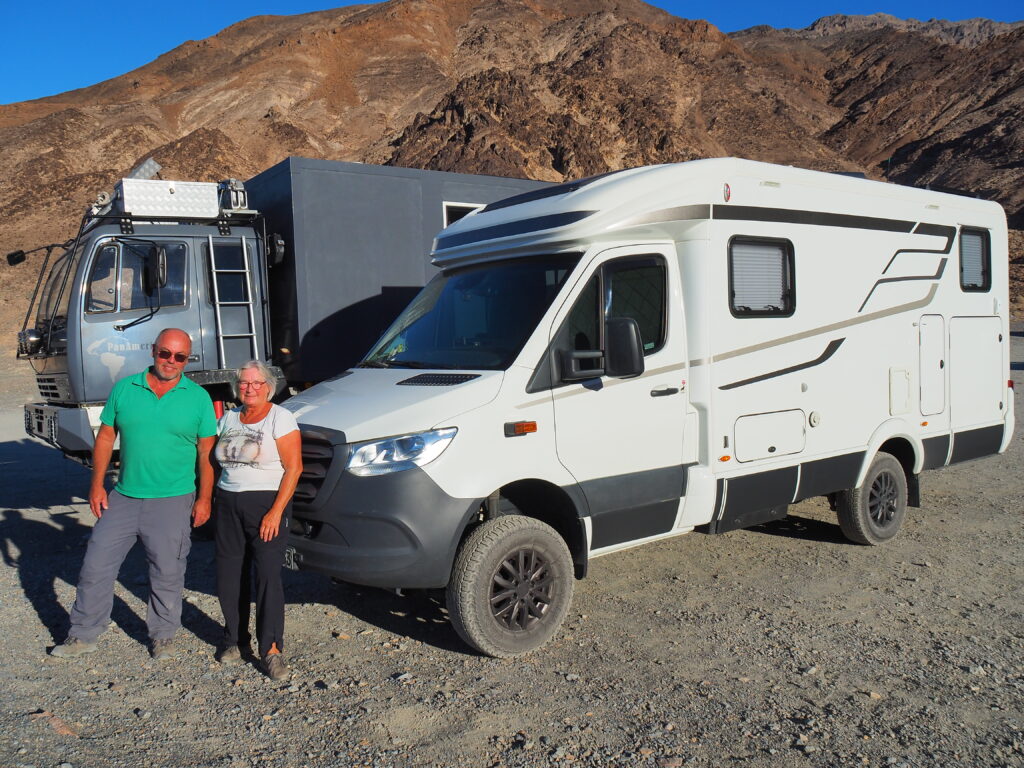 unterwegs treffen wir auf diesen noblen Ami-Camper. Erinnert uns an die Almhütten bei uns zuhause