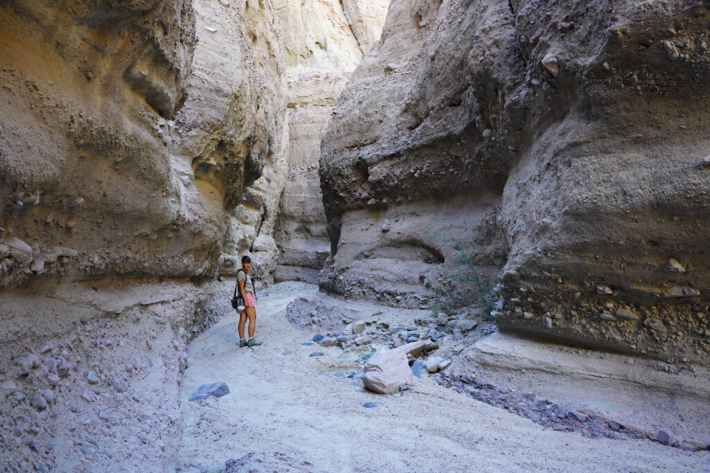 über ein ausgetrocknetes Flußbett erreichen wir einen SLOT CANYON im ANZA BORREGO STATE-PARK
